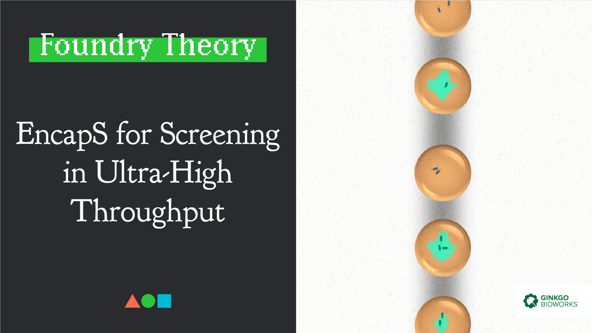 EncapS is Ginkgo's technology for Encapsulation and Screening in ultra-high throughput. By packaging microbes into nanoliter-scale bioreactors, we can quickly screen for high performance microbes in batches of 100,000 at a time.