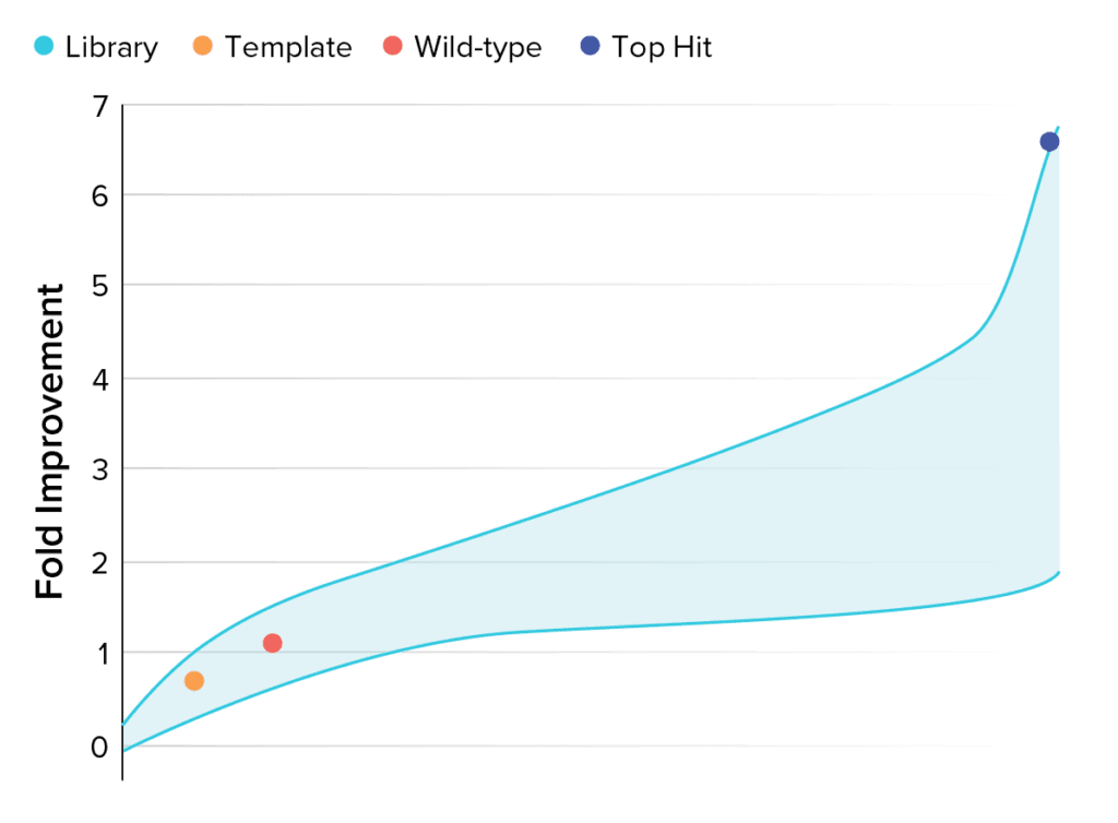 Ginkgo’s protein engineering team identified enzymes with 600% increase in activity compared to the native starting protein.